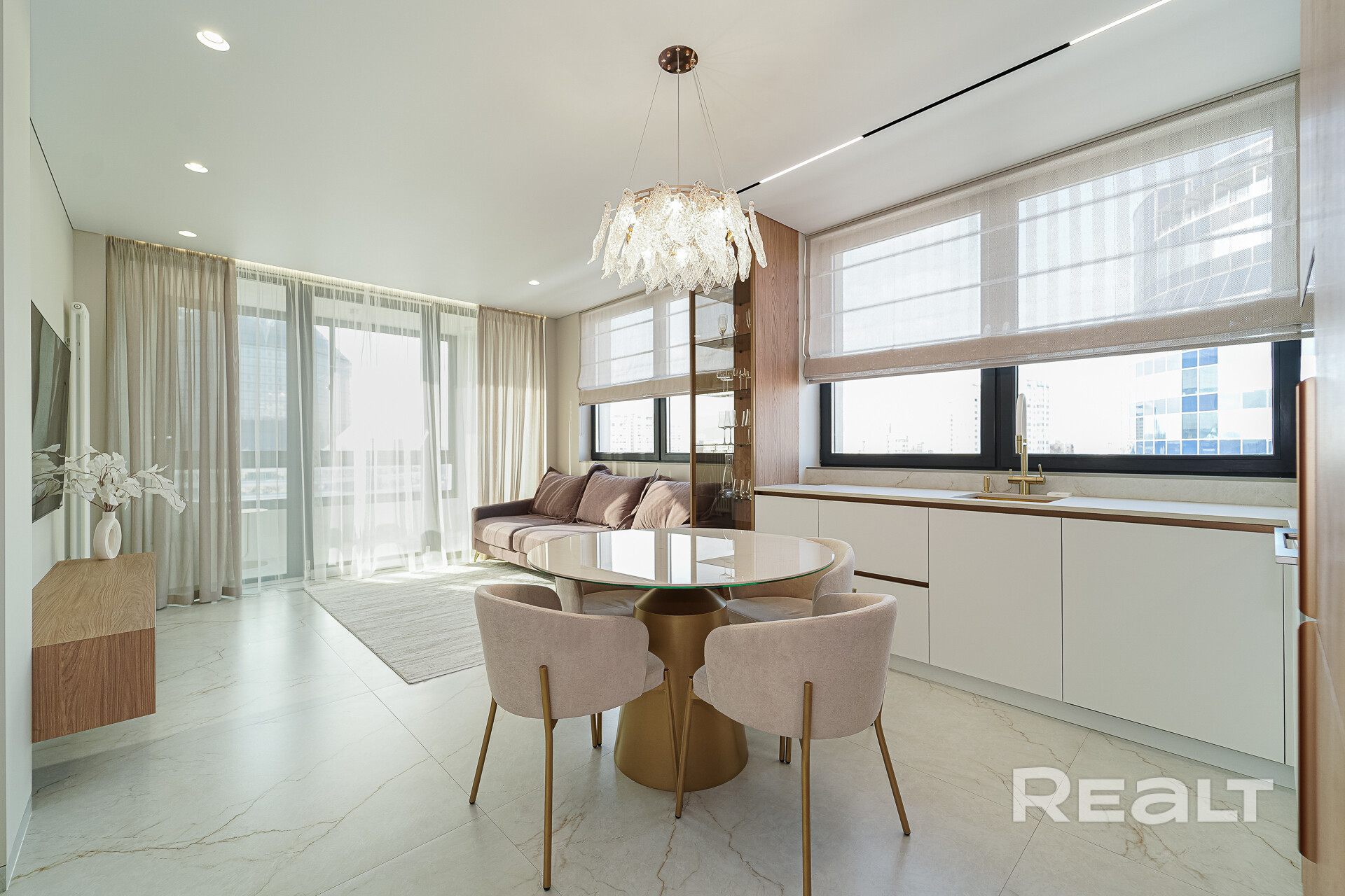 Премиальная 4-ком. квартира в Маяке Минска. Новая стильная элегантная квартира с авторской отделкой и функциональной планировкой, только качественные материалы, технологичные решения, современные тренды дизайна. Система умный дом, автоматизированное освещение, климат-контроль с использованием кондиционеров и бризеров (приточная вентиляция), тёплые полы и подогреваемые подоконники. 3 сан/узла, мастер-спальня с элегантной ванной комнатой и гардеробной, уютный кабинет. Бесключевой доступ в квартиру, видеодомофон, панорамный вид на библиотеку. Дом повышенной комфортности, дизайнерское лобби, стойка для консъержа, подземный паркинг с удобным доступом на лифте. Рядом с домом фонтан, бульвар Пикассо, множество досуговых заведений, живописная набережная для прогулок. В квартире никто не проживал, свежесть, чистота, нетронутая энергетика - всё здесь. Это нужно увидеть.Агенствам без покупателя не беспокоить.