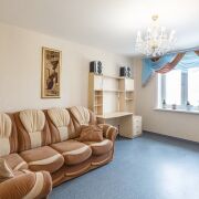 Просторная прихожая с вместительным шкафом для верхней одежды. Большая светлая гостиная. Две отдельных спальни выходят в тихий двор. Кухня-столовая с кухонным гарнитуром, техникой и столовой группой. Раздельный санузел, туалет с умывальником и писсуаром. Межкомнатные двери покрыты дубовым шпоном.