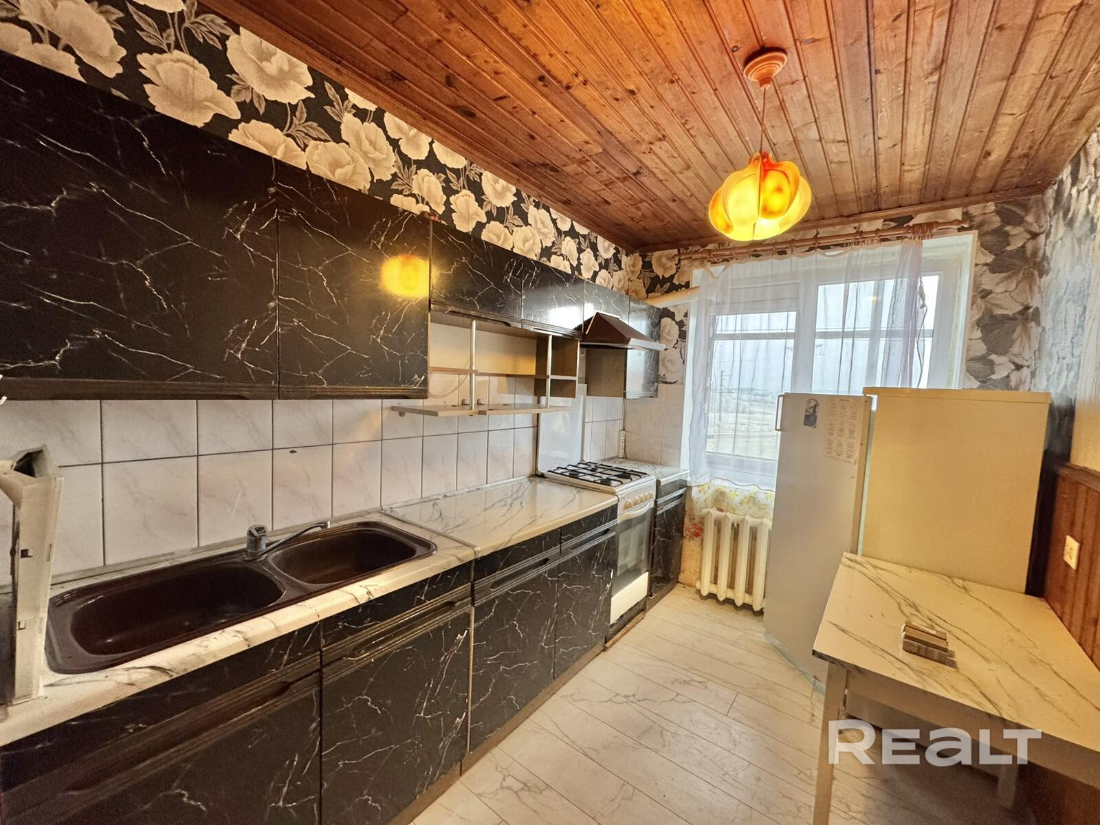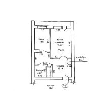Эта прекрасная квартира располагается на четвёртом этаже четырехэтажного кирпичного дома, построенного в 1990 году. Просторная общая площадь составляет 39.2 кв.м., жилая 14.5 кв.м., кухня 7.8 кв.м.
