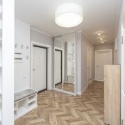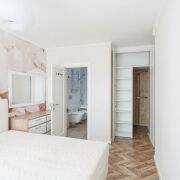 В жилых комнатах оборудованы скрытые встроенные шкафы.