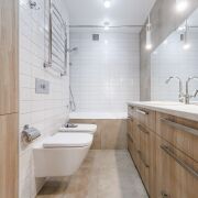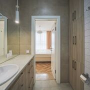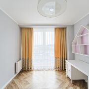 Две раздельные жилые комнаты: мастер - спальня 15,8 кв.м. со своей ванной комнатой и санузлом 4,6 кв.м., личной гардеробной; детская жилая комната 11,8 кв.м.; просторная кухня – гостиная 25,1 кв.м. с выходом на лоджию; второй санузел, совмещенный с просторной душевой 5,2 кв.м.; общая гардеробная.