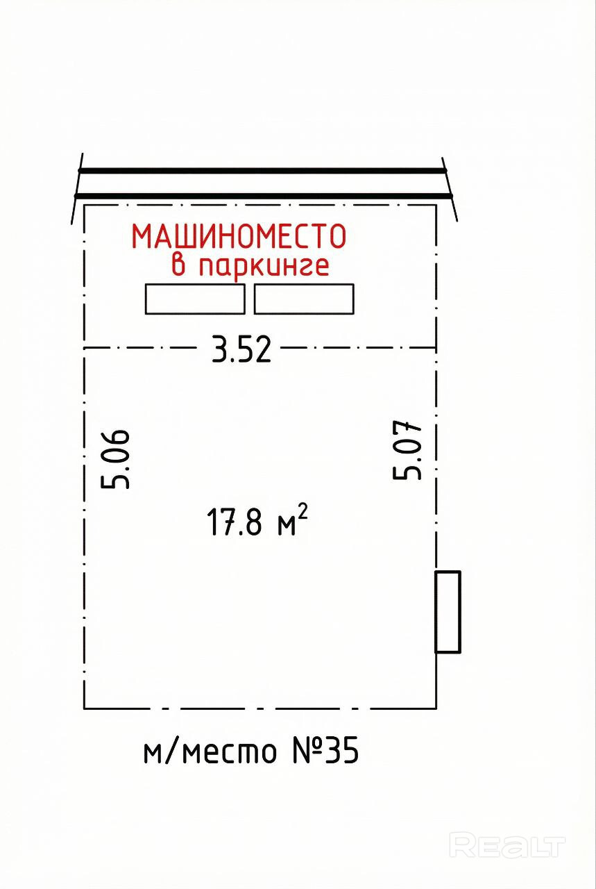 Размеры машино - места: общая площадь 17,8 кв.м.; глубина 5,07 м* ширина 5,52 м.