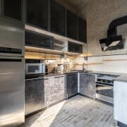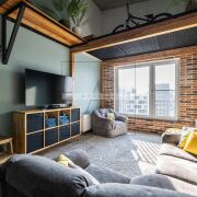 Это квартира про стиль и ощущение пространства: высокие потолки, второй уровень в комнате, открытые фактуры, продуманное освещение и готовность сразу жить без компромиссов. В квартире остается вся мебель и почти вся техника.