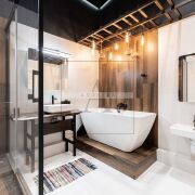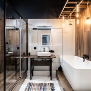 Санузел уровня “как в хорошем отеле” — отдельная ванна и душевая, современная сантехника.