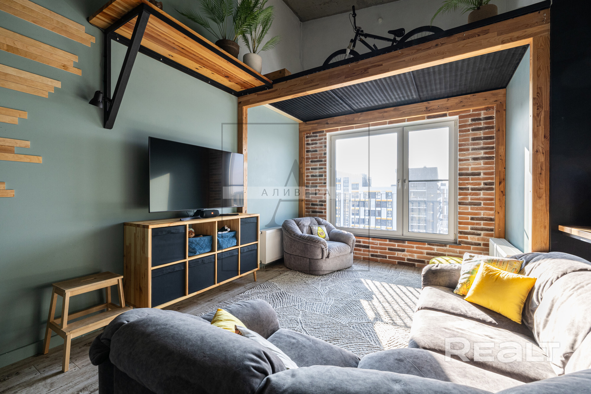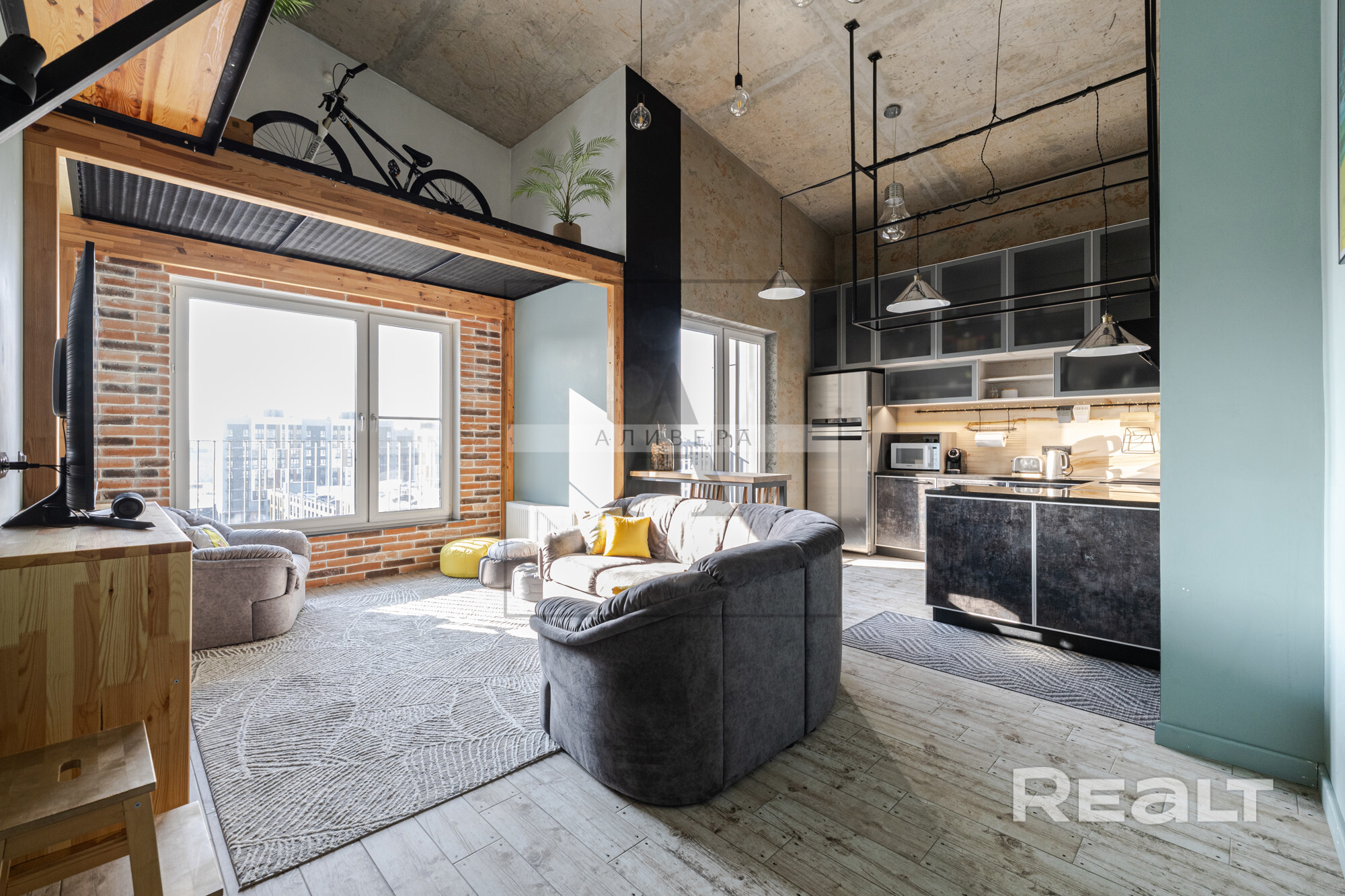 Стильный современный лофт, качественные материалы, много света.