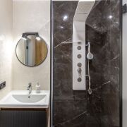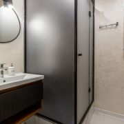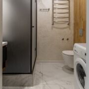 Выполнен ремонт с использованием качественных материалов. Полы с подогревом. Множество опций освещения.