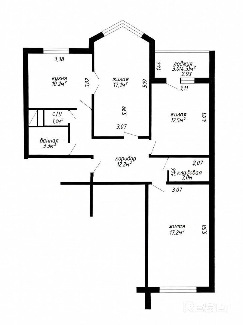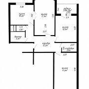 Простор для жизни: три раздельные комнаты (17.2, 17.1 и 12.5 м2) и огромная прихожая (12.2 м2).