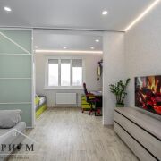Квартира в отличном состоянии, выполнен качественный ремонт с использованием современных материалов. Стильная кухонная зона, со встроенным качественным кухонным гарнитуром и техникой. Светлая ванная комната с практичной плиткой и хорошей сантехникой. В коридоре установлено два удобных шкафа для вещей. Жилая комната разделена на две зоны. Площадь квартиры 45.2 кв. м., высота потолков 2.65 м.