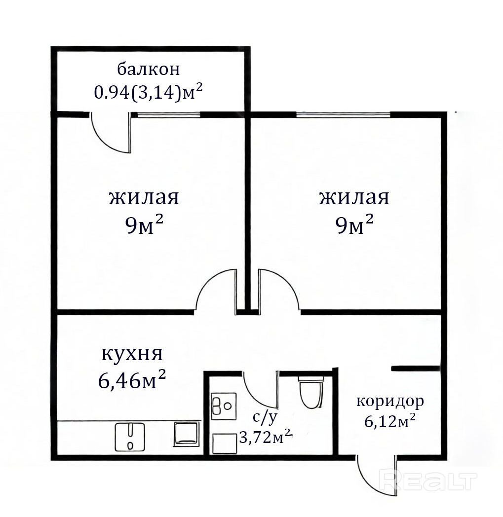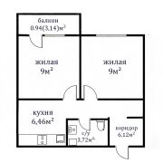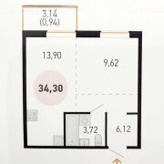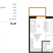 Продуманная планировка: общая площадь 35.24 м2, просторная кухня-гостиная 23.5 м2 и уютная спальня 9 м2.