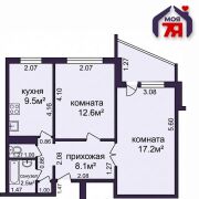 -Продается светлая 2-комнатная квартира на 1 этаже 9-этажного дома с общей площадью по СНБ 53,5 кв.м. и жилой 29,8 кв.м.