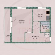 В квартире большая жилая комната 18,3 кв.м. с двумя окнами и балконом, совмещенный сан. узел, уютная кухня 5,5 м.кв.