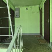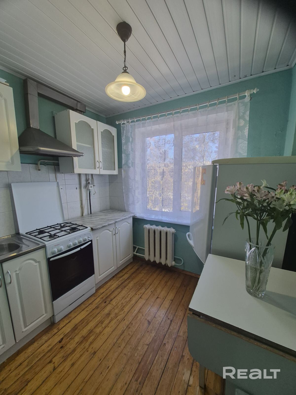 Стеклопакеты, кухня, на полу шлифованная доска, балкона нет.