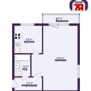 - 2-й этаж 5-этажного дома, 1-комнатная квартира, общая площадь 30,6 м2 (жилая — 19 м2, кухня — 5,8 м2)