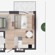 Квартиры с террасами на 1-м этаже площадью от 18 до 28 кв.м — полноценные террасы с видом в зеленый коридор и во двор.