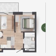 Квартиры с террасами на 1-м этаже площадью от 18 до 28 кв.м — полноценные террасы с видом в зеленый коридор и во двор.