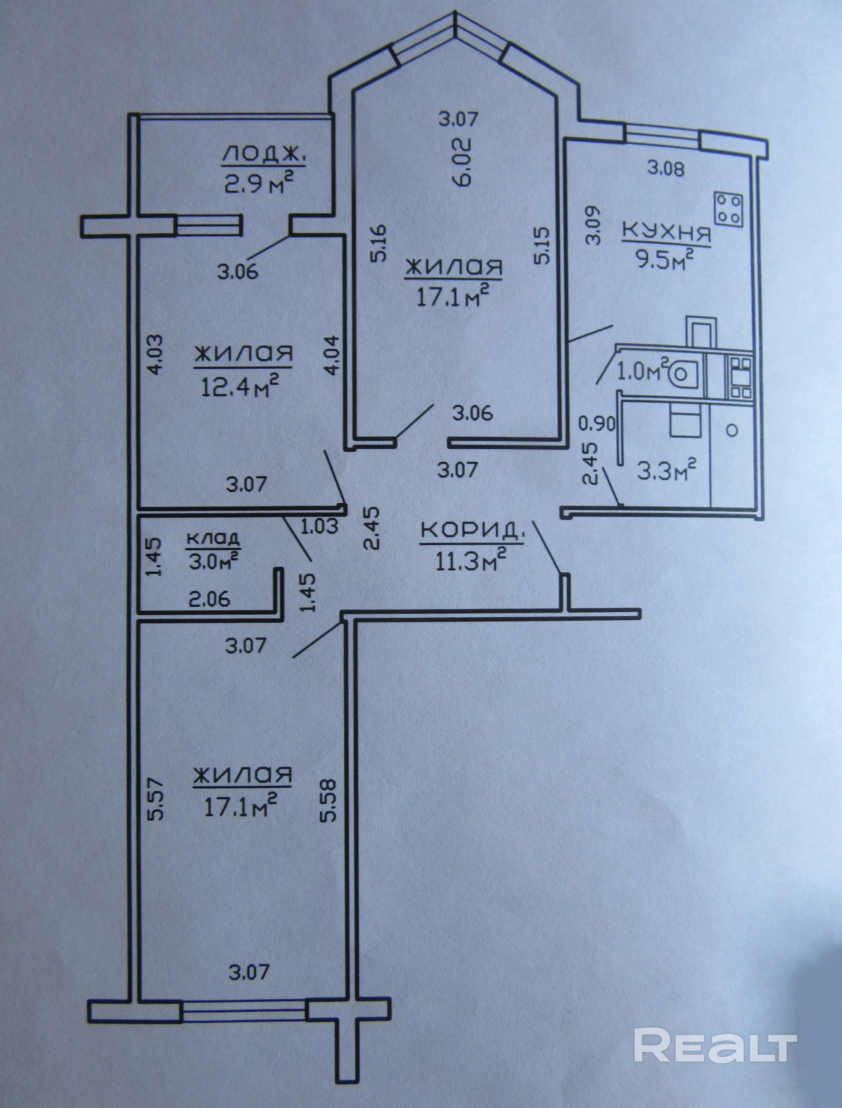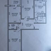 - Три жилые комнаты: 17.1, 17.1 и 12.4 м2.