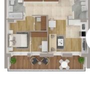 Квартира расположена в новом доме «Беллунские Доломиты» комфорт‑класса, в самом зелёном квартале Happy Planet жилого комплекса «Минск Мир». До станции метро «Аэродромная» — 5 минут пешком.