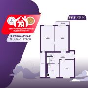 - Квартира с продуманной планировкой. Общая площадь 66,5 кв.м жилая 47,2 кв.м кухня 7,6 кв.м. Комнаты правильной формы легко подойдут под разные сценарии обустройства.