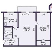 - Большая жилая комната 19,2 м2 — просторная, светлая, с выходом на застеклённый балкон: идеально для гостиной или спальни с зоной отдыха.