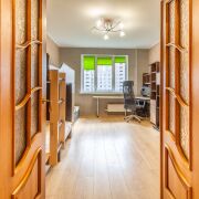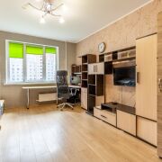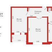 Комнаты достаточно просторные: 16,3м2 - удобной квадратной формы и уютной спальной комнаты - 13,1м2 с застекленной лоджией и спортивным инвентарем впридачу. На окнах стеклопакеты, на полу ламинат.