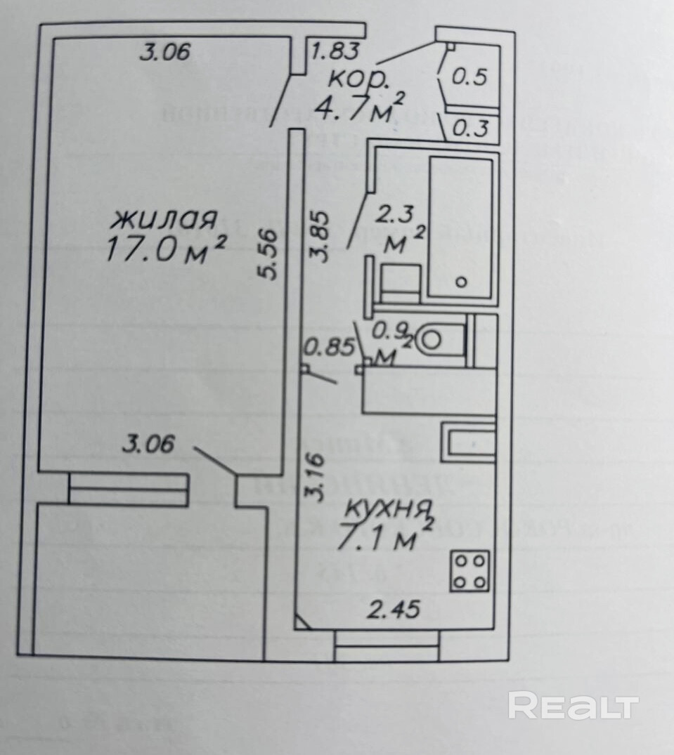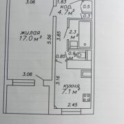 Площадь квартиры по СНБ – 34,9 м.кв., общая - 32,8 м.кв., жилая – 17,0 м.кв., кухня – 7,1 м.кв. Комфортный 6 этаж. Окна выходят на юг. В тамбуре 2 квартиры.