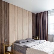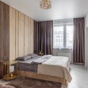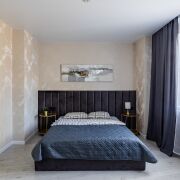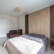 - В спальне — двуспальная кровать, гардероб и уютный диван