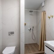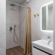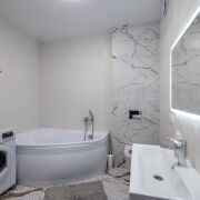 - Два санузла с ванной, душевой кабиной, инсталляциями, стиральной машиной, имеется бойлер на 80 л