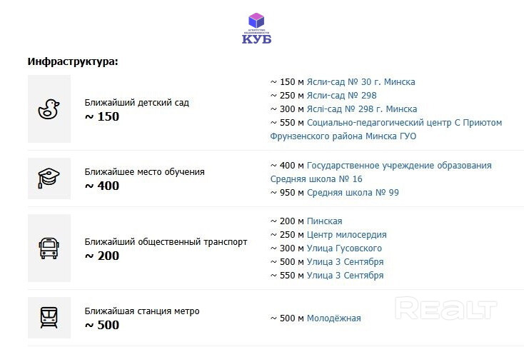 - В шаговой доступности — детские сады (150–300 м) и школы (400–950 м)