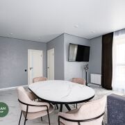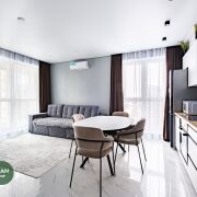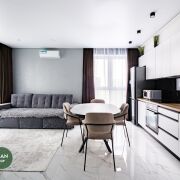 В квартире сделан хороший и качественный ремонт, продуманная электрика, раздельные зоны света, дорогая и качественная сантехника, кондиционер, установлена кухня с полным комплектом техники: посудомоечная машина, духовой шкаф, варочная панель, вытяжка, холодильник.