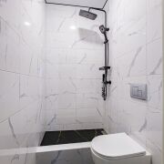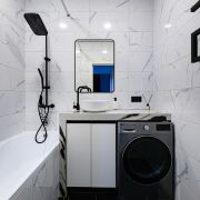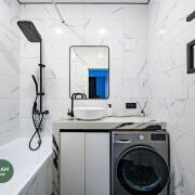 Раздельные санузлы добавляют комфорта, особенно тот факт, что в одном санузле ванна, зеркало с подсветкой, умывальник, места хранения, стиральная машина, а в во втором душевая!