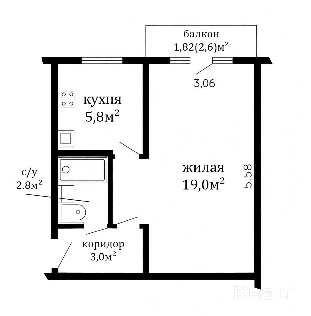 - Площадь кухни