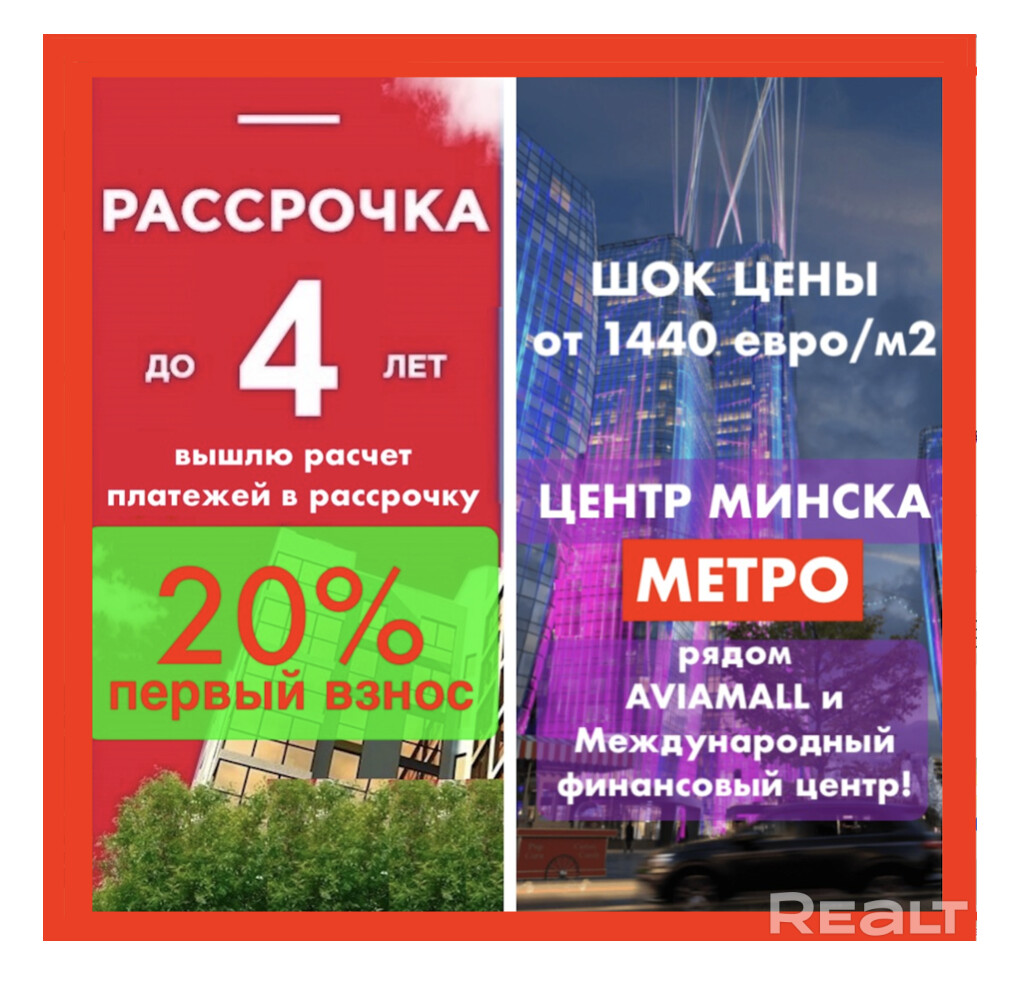 Последние студии - звоните прямо сейчас (24/7)! Апарт.551 Выбор этажей и планировок! Вышлю РАСЧЕТ платежей в РАССРОЧКУ на 4 года! Рассрочка БЕЗ СПРАВОК и ПОРУЧИТЕЛЕЙ - только ваш паспорт! Первый взнос всего 20%! ВНИМАНИЕ! Продажа напрямую от застройщика, без комиссий агентству!