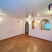 -В комнатах установлены деревянные стеклопакеты - экологично, тепло и с хорошей шумоизоляцией. На полу дубовый паркет и керамическая плитка - долговечные и надежные материалы. Натяжные потолки придают особый шарм ремонту.
