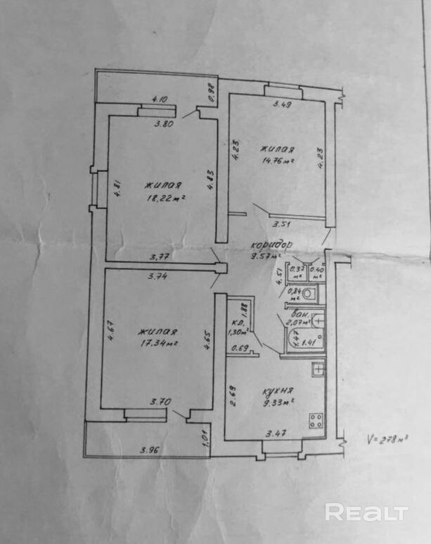 • Комнаты: 18.22 / 17.34 / 14.76 м2 (изолированные)