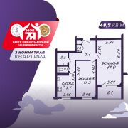 -Общая площадь квартиры 48,7 кв.м (жилая площадь 28,3 кв.м) оптимально организована для комфортного проживания.
