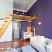 Две изолированные жилые комнаты: 25,5 м2 (гостиная) и 14,2 м2 (спальня). Кухня-столовая 10,5 м2. Высота потолков 4 метра — невероятный объем воздуха, который невозможно передать фотографиями. Дополнительные антресольные зоны (с высотой 2 метра) — под кабинет или лаунж. Гардеробная в 4 метра с лестничным блоком.