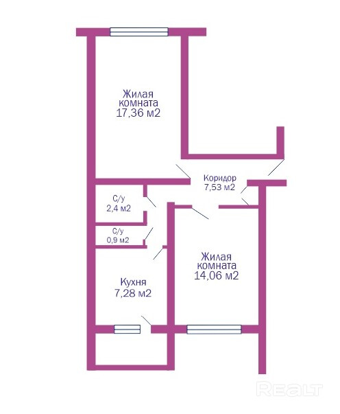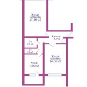Особенности планировки: 2 жилые комнаты общей площадью 31.42 м2(17.36 м2 и 14.06 м2) — идеальное пространство для семьи.