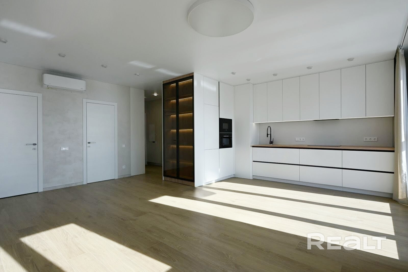 База готова: На кухне вас ждет техника Bosh. Мебель будет поставлена чуть позже (можно обсудить), а пока вы видите идеально чистый холст для ваших дизайнерских решений.