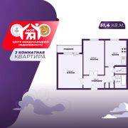 -Квартира на 9 этаже в 9-этажном доме общей площадью 51,4 кв.м. (жилая — 28 кв.м.) расположена в удобном районе с развитой инфраструктурой.