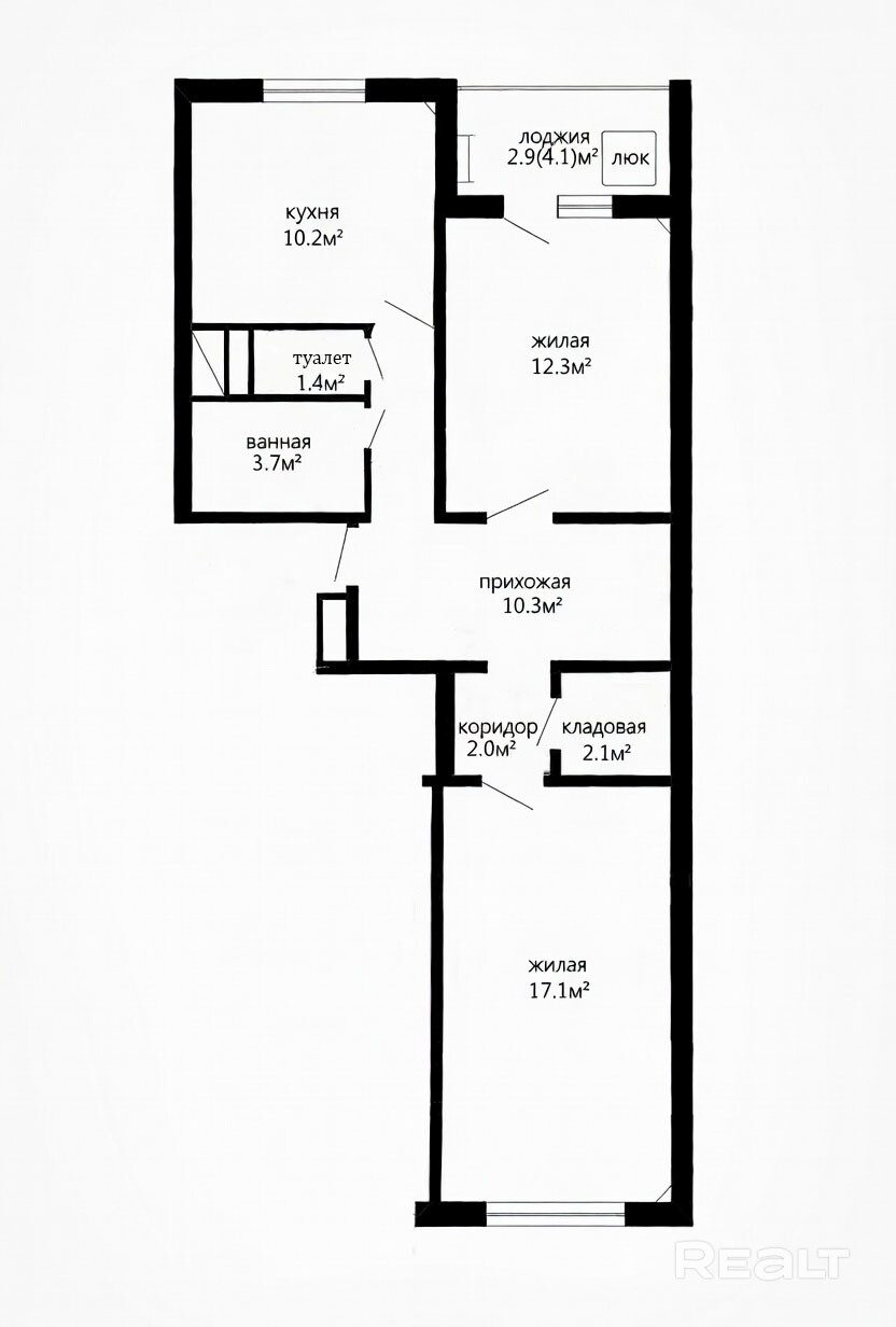 Раздельные комнаты — 17,1 м2 и 12,3 м2 — каждая выходит на разные стороны: утро в одной, вечер — в другой. Свет здесь не просто есть — его очень много. Большая кухня-гостиная (10,2 м2) — идеальное пространство для утреннего кофе, семейных ужинов или вечернего вина с красивыми видами.