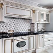 - Кухня укомплектована современной техникой известных брендов. Встроенный холодильник Electrolux работает бесшумно. Духовой шкаф Smeg и индукционная варочная панель Electrolux позволяют готовить с удовольствием. Микроволновая печь Gorenje выполнена в классическом стиле. Стиральная машина AEG и сушильная Bosch экономят время. В квартире есть кофемашина и кофемолка DeLonghi, водонагреватель Electrolux и система тёплого пола, которая создаёт приятное ощущение заботы о деталях.