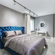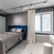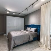- Общая площадь квартиры 76 кв.м., жилая 68,5 кв.м., кухня 7,3 кв.м. Пространство спроектировано с вниманием к каждой детали. Кухня-гостиная соединена с прихожей, благодаря чему пространство выглядит лёгким и свободным. Спальня отделена от общей зоны и имеет собственную гардеробную, скрытую за изящной перегородкой. В прихожей расположена ещё одна гардеробная, где удобно хранить вещи и бытовые мелочи. Санузел совмещён и выполнен в современном стиле. Из квартиры есть выход на лоджию. Окна выходят во двор, что создаёт ощущение тишины и изоляции от городского ритма.