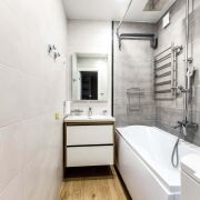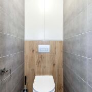 - В санузлах импортная сантехника, инсталляция, потолки натяжные. В ванной установлена вентиляция, управление которой осуществляется с пульта.