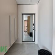 Комфорт: Панорамные окна в пол обеспечивают максимум света. В коридоре и комнатах предусмотрены зоны хранения (встроенные шкафы).