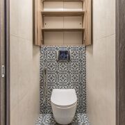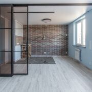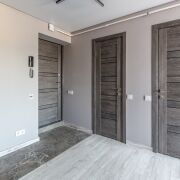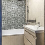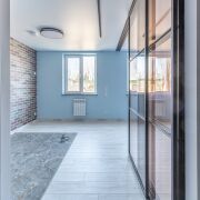 2. Стены под покраску, ламинат, в санузлах — современная плитка. Полная замена сантехники.