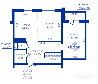 50.9 м²