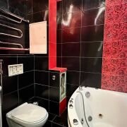 -Санузел облицован плиткой, установлено джакузи - функциональная деталь, которая добавляет квартире уровень комфорта и позволяет расслабиться после рабочего дня.
