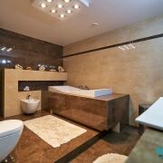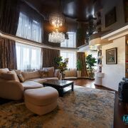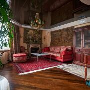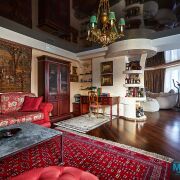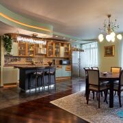 В квартире произведена и узаконена перепланировка- кухня, гостиная и комната отдыха с камином объединены в единое пространство.