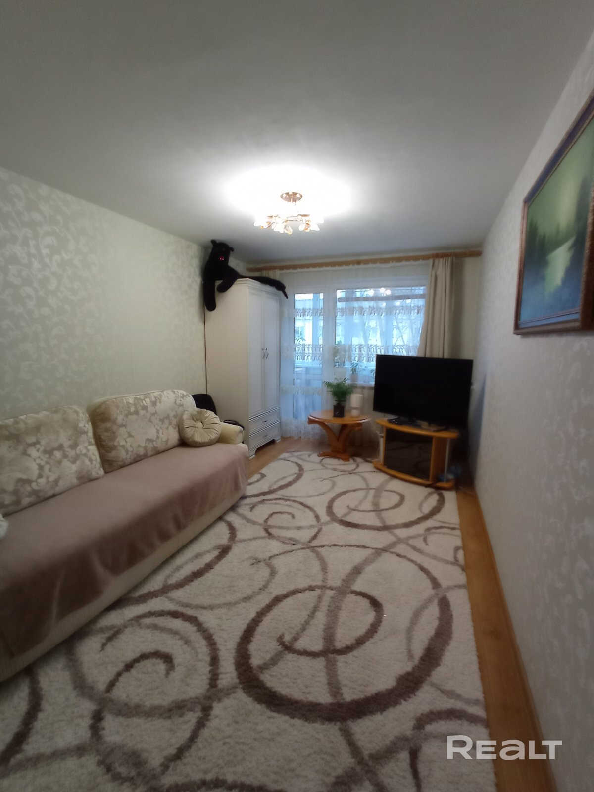 При продаже остается встроенная кухня, два вместительных шкафа-купе и письменный стол. Есть застекленный балкон. Также за квартирой закреплено подвальное помещение.