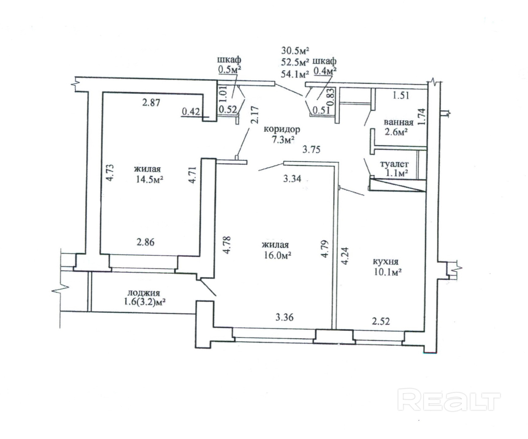 Общая площадь по СНБ 54.1м2